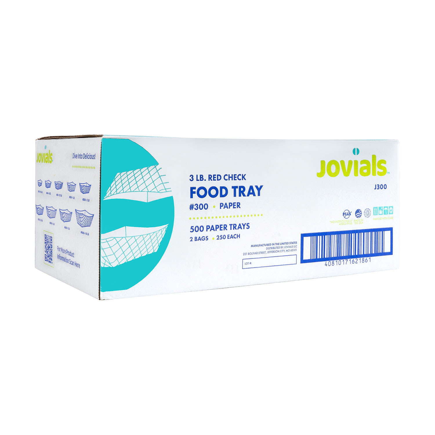 Jovials #300 (3 lb.) Paper Food Trays are sturdy, microwaveable, and made to handle hot or cold foods with ease. The red checkered design adds a classic touch, while the grease-resistant clay coating keeps things clean. Compostable, recyclable, and made without intentionally added PFAS.