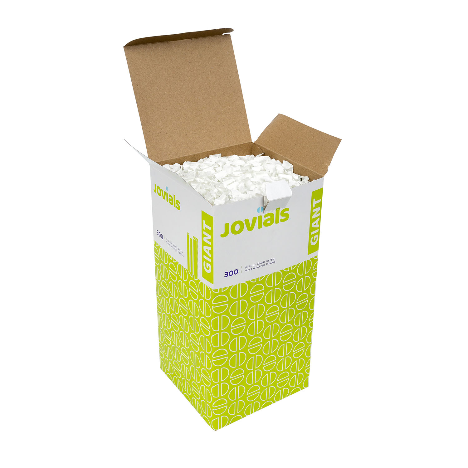 Jovial’s Giant 10.25" Green Straws, featuring an iconic red and white stripe, are perfect for milkshakes and smoothies. Individually paper-wrapped for sanitation and boxed for convenience, they’re ideal for restaurants, concession stands, and cafeterias.