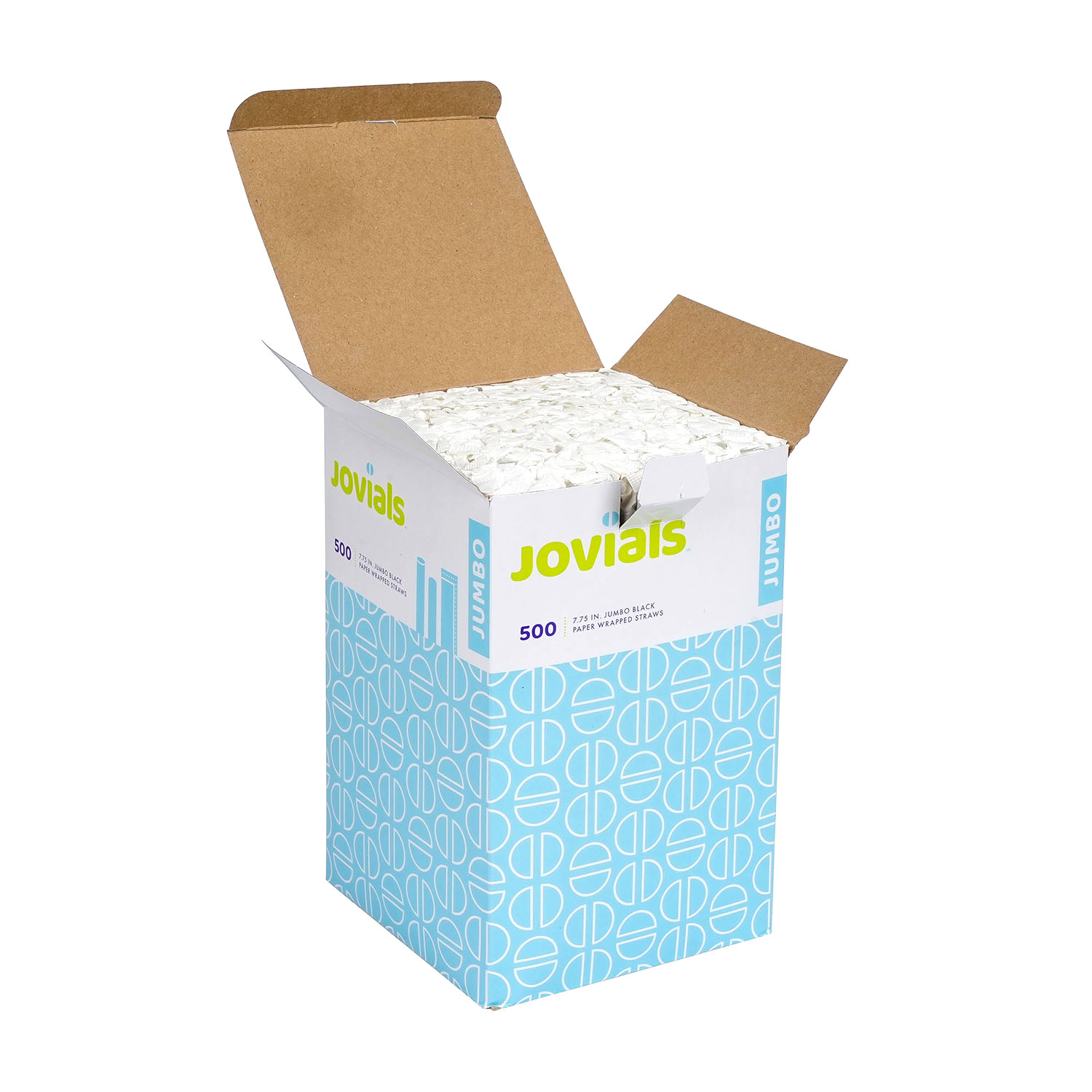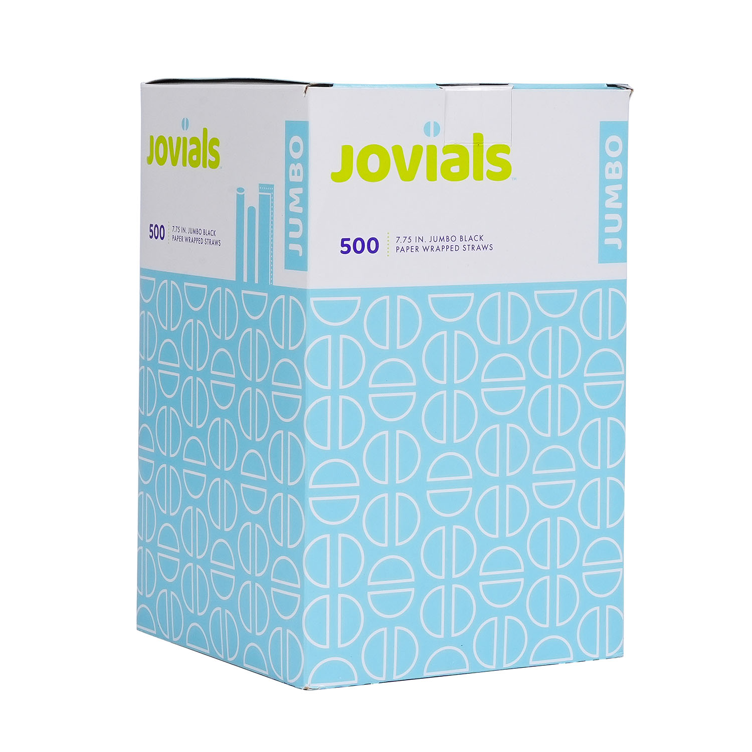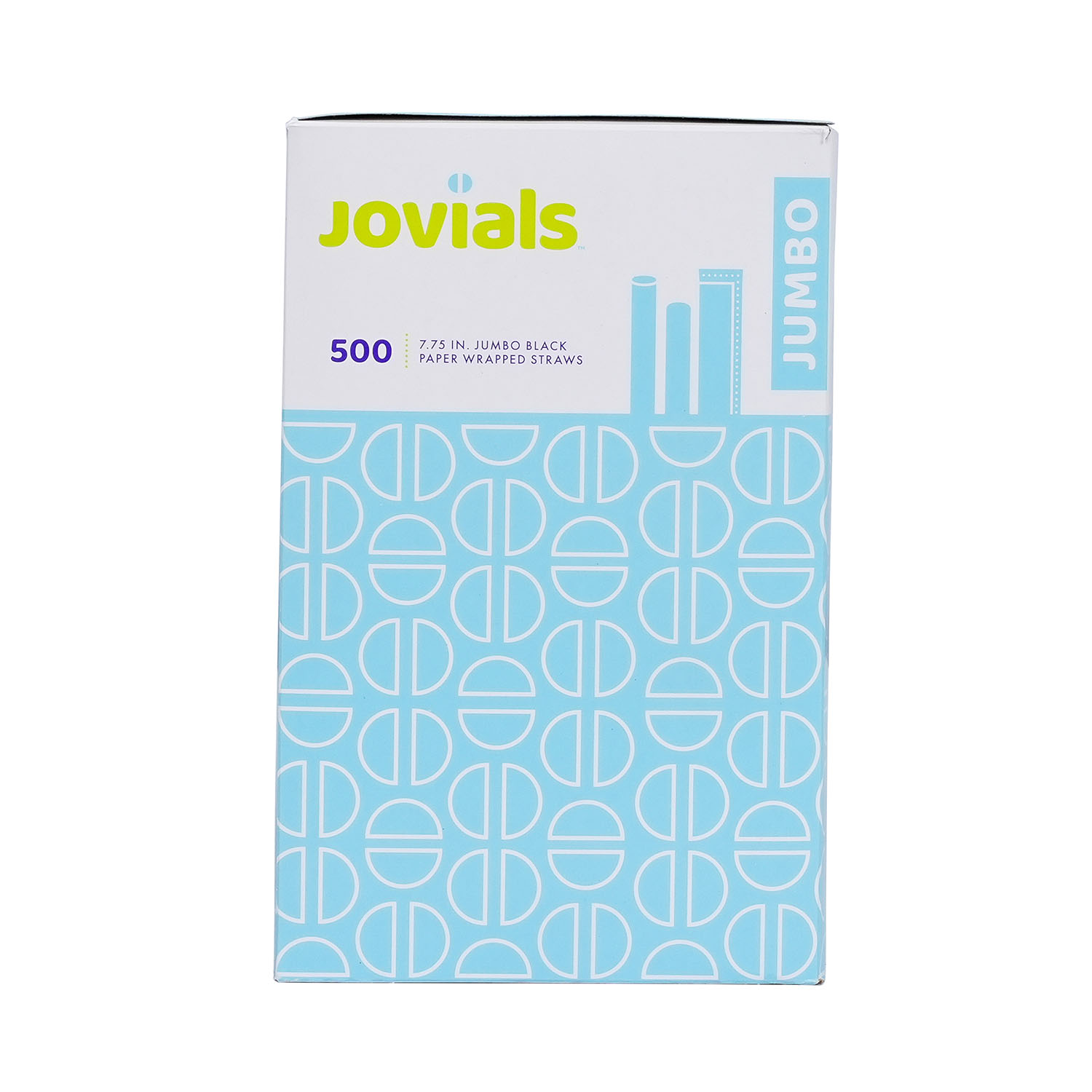 Designed for water, juice, and soda, Jovials Jumbo Black 7.75" Straws are individually wrapped for hygiene. Conveniently boxed and ideal for high-traffic food service locations.