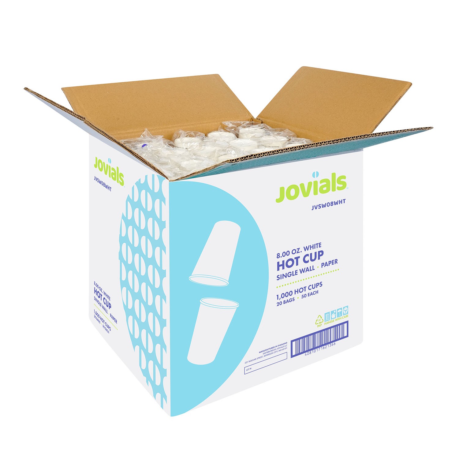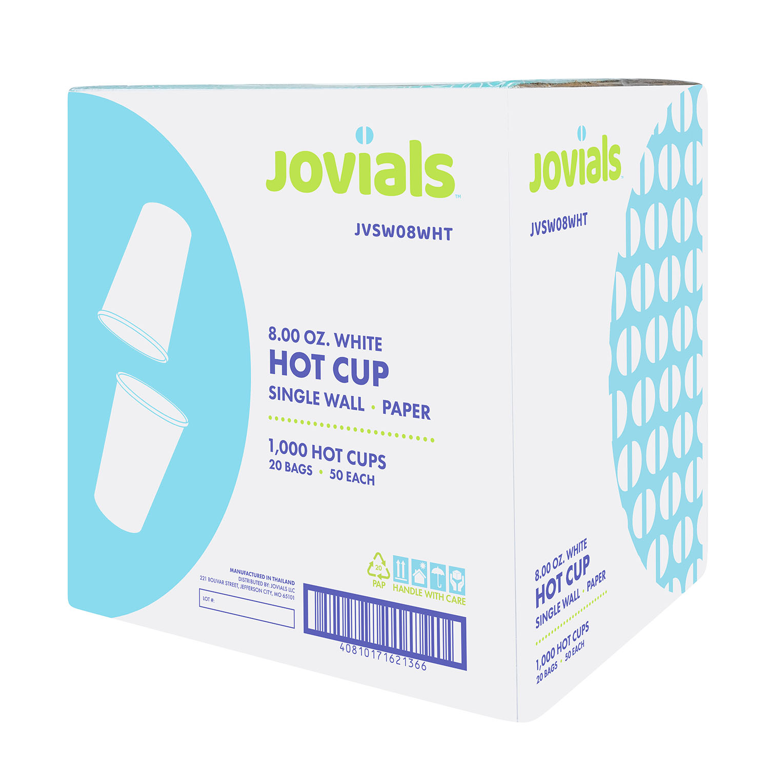 Jovials™ Paper Single Wall Hot Cup, White, 8 oz